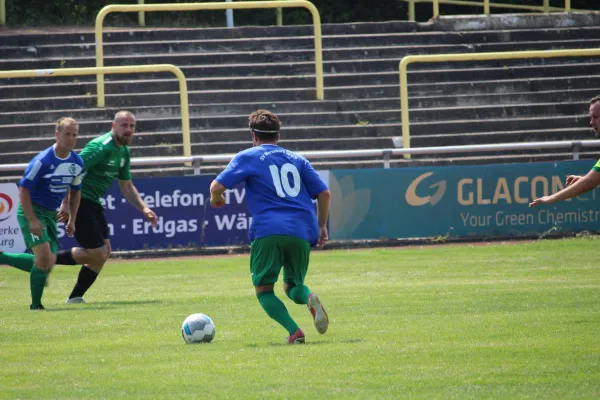 Zu Beginn ein offenes Spiel, wobei die 1. Chance den Gästen gehörte. Nach einem unnötigen Ballverlust an der Seitenlinie konnte der TSG Stürmer eine Flanke mustergültig per Kopf verwandeln.